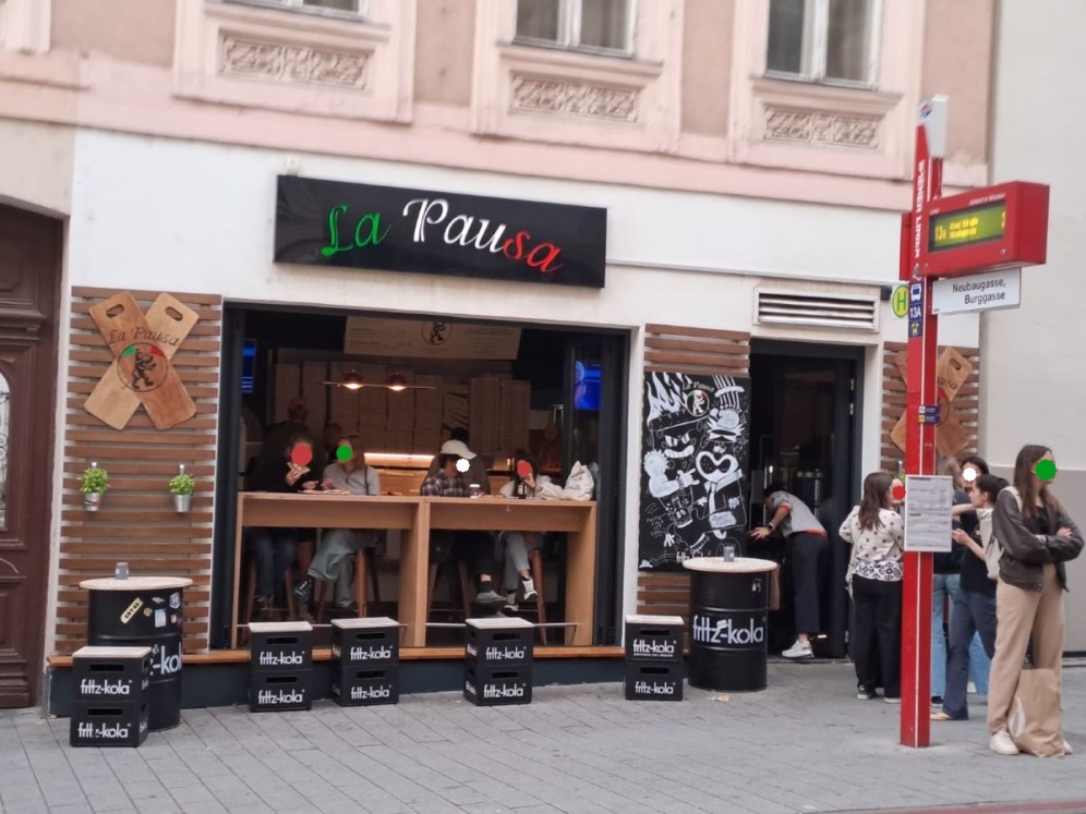 Pizza und Pasta sind längst Teil unseres Alltags, doch für mich bleibt dieses Essen ein Stück mediterrane Kultur und nicht klassisch österreichische Küche. Zum Glück muss ich dafür nicht weit reisen, denn mitten im Siebten gibt es La Pausa in der Neubaugasse 70, 1070 Wien. Ich kenne den Laden noch aus Berlin und war dort schon ein großer Fan. Umso mehr freue ich mich, dass ich ihn hier in Wien wiedergefunden habe. Gerade wenn ich spontan Hunger bekomme, wenig Zeit habe und trotzdem etwas richtig Gutes will, hole ich mir dort ein Stück Pizza – manchmal auch zwei. Wer sagt schließlich, dass man mediterrane Küche nicht auch to go genießen kann? Mehrere Sorten lachen mich aus der Auslage an, diesmal entscheide ich mich für Diavolo und ein Stück Thunfischpizza. Meinen kleinen mediterranen Moment genieße ich draußen, auf einem improvisierten Hocker aus Fritz-Cola-Kisten, ein Stück südländisches Streetlife mitten im Siebten.