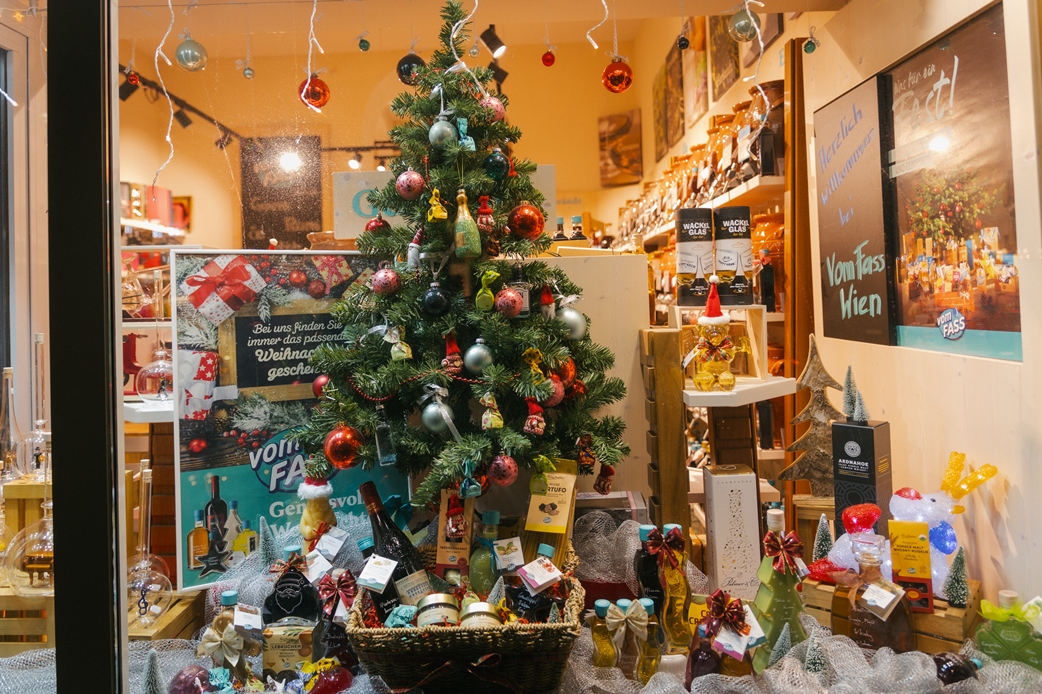 Bei vomFass Wien-Neubau kannst du während der Geschäftszeiten mit einem Häferl Punsch in der Hand gemütlich am Indoor-Adventmarkt die besten Geschenke für Genießer*innen entdecken. Mike und sein Team haben im hinteren Teil des Shop flüssige Geschenkideen ganz wie auf einem Christkindlmarkt aufgebaut – nur ohne die Kälte.