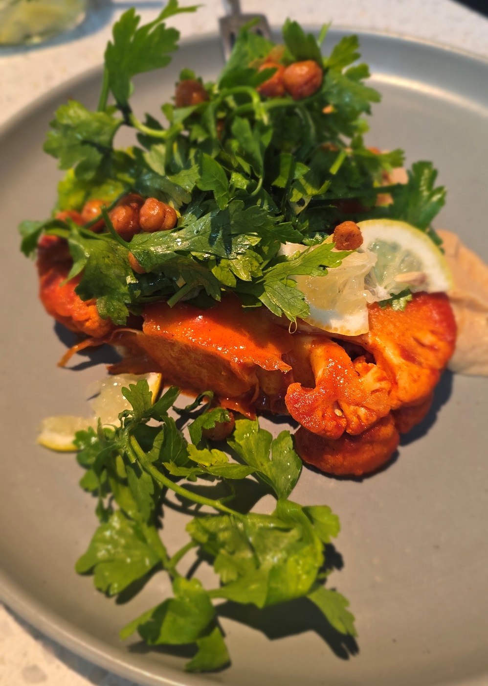 Die Küche ist international inspiriert, hat aber ihren Schwerpunkt in der orientalischen Küche. Vor allem für Veganer*innen gibt es hier einiges zu entdecken. Beim Blick auf die Speisekarte fällt uns sofort die große Auswahl an pflanzlichen Gerichten auf: Falafel in Pita oder am Teller, Tortilla Falafel, verschiedene Bowls und sogar Burger stehen zur Wahl. Unser Favorit ist die Sweet Patata Tofu Bowl: eine bunte Kombination aus gegrilltem Tofu, Süßkartoffel-Pommes, Quinoa, Kichererbsen, Avocado, Blattsalat, Gurke, Cherrytomaten, Sesam und gerösteten Zwiebeln. Dazu wählen wir die vegane Linsensuppe als Vorspeise.